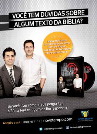 1) O documento é uma carta de boas-vindas de um pastor a um novo aluno da Escola Bíblica da Rede Novo Tempo, desejando um bom aprendizado e abençoando o aluno e sua família.