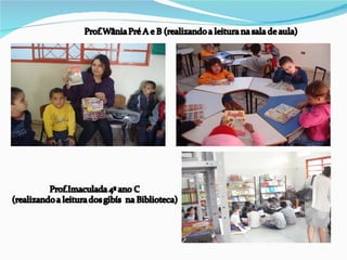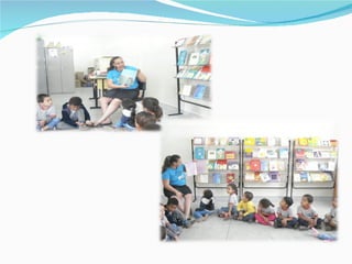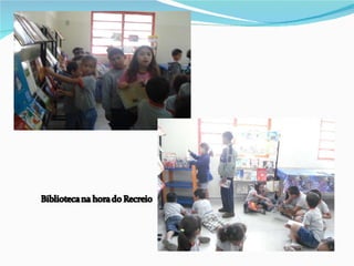 O documento descreve projetos desenvolvidos pela Biblioteca Pedro José da Silva no primeiro semestre de 2011, incluindo: (1) Parada da Leitura Mensal, um projeto para promover o prazer da leitura na comunidade escolar; (2) Projeto Gibi, para despertar o interesse pela leitura de gibis entre alunos do pré ao 4o ano; (3) Lendo no Recreio, permitindo que alunos leiam livros durante o recreio.
