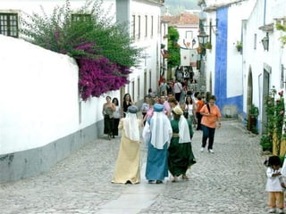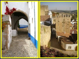 A vila de Óbidos na região de Leiria possui séculos de história dentro de suas muralhas, com um vasto patrimônio arquitetônico religioso e vestígios históricos. Conquistada por Afonso Henriques no século XII, foi doada às rainhas no ano de 1210 e tornou-se importante localidade real. Sua arquitetura e cultura refletem a influência mouro-árabe e judaica ao longo dos séculos.