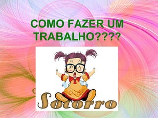 O documento fornece instruções em 6 etapas para realizar um trabalho: 1) Definir a tarefa; 2) Pesquisar fontes e informações; 3) Organizar a informação coletada; 4) Sintetizar a informação; 5) Apresentar os resultados; 6) Avaliar o trabalho concluído.