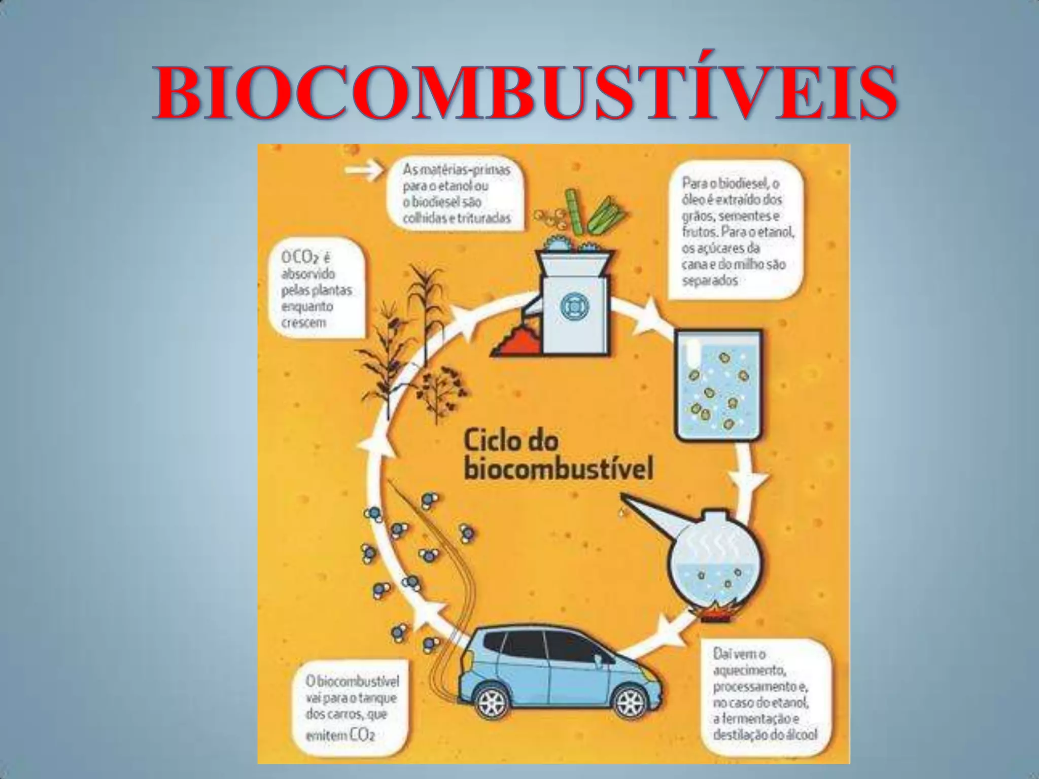 Os biocombustíveis são feitos de vegetais como milho e cana-de-açúcar e podem reduzir a emissão de gases poluentes. No entanto, seu cultivo em larga escala pode diminuir a produção de alimentos, aumentar o desmatamento e reduzir a biodiversidade. Além disso, a queima da cana-de-açúcar libera grandes quantidades de gases.