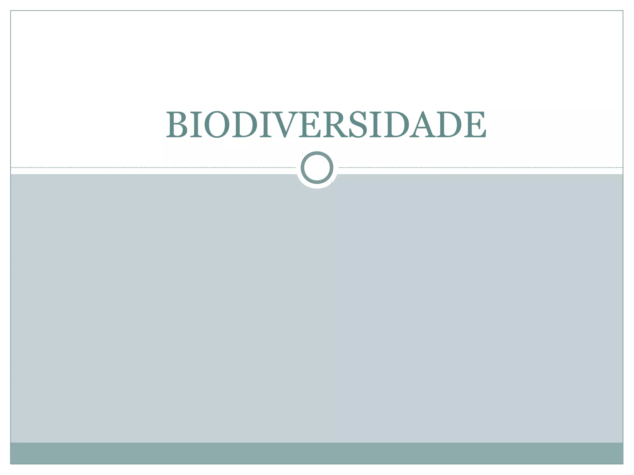 O documento discute a biodiversidade, definindo-a como a diversidade genética, específica e ecológica. Apresenta os diferentes reinos biológicos e biomas, e discute as principais ameaças à biodiversidade, incluindo poluição, expansão urbana e excesso de exploração de recursos.