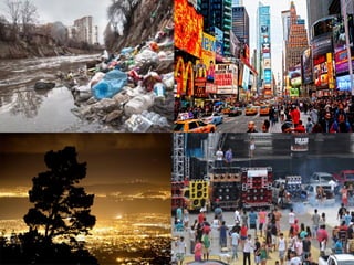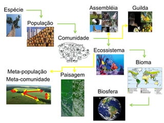 Este documento discute a biodiversidade em três níveis: 1) Define biodiversidade como a variedade de espécies vivas em um lugar ou no planeta; 2) Explica que a biodiversidade pode ser subdividida em diversidade genética, específica e de ecossistemas; 3) Apresenta as principais ameaças à biodiversidade, incluindo poluição, expansão agrícola e urbana, exploração excessiva de recursos e espécies.