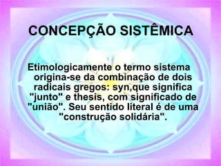 1) O documento discute conceitos-chave da concepção sistêmica como sistema, biofluxo e vida livre.
