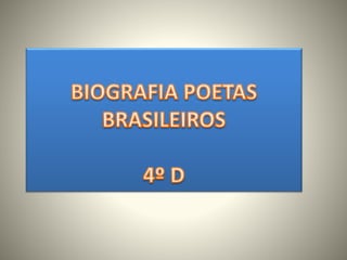 Carlos Drummond de Andrade nasceu em Minas Gerais no início do século XX. Formou-se em farmácia e trabalhou como funcionário público no Rio de Janeiro. Publicou seus primeiros livros na década de 1930, abordando temas como a passagem do tempo, a melancolia e a crítica social. Foi um importante poeta modernista brasileiro.
