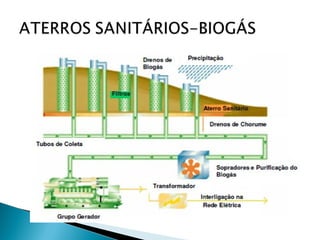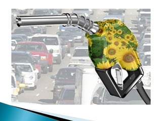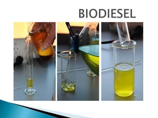 O documento discute as propriedades e usos do biodiesel e biogás. O biodiesel é produzido a partir de fontes renováveis como óleos vegetais através de um processo de transesterificação. Pode ser usado puro ou misturado com diesel em motores. Já o biogás é gerado a partir da decomposição de resíduos orgânicos e pode ser usado como combustível ou para geração de energia elétrica.