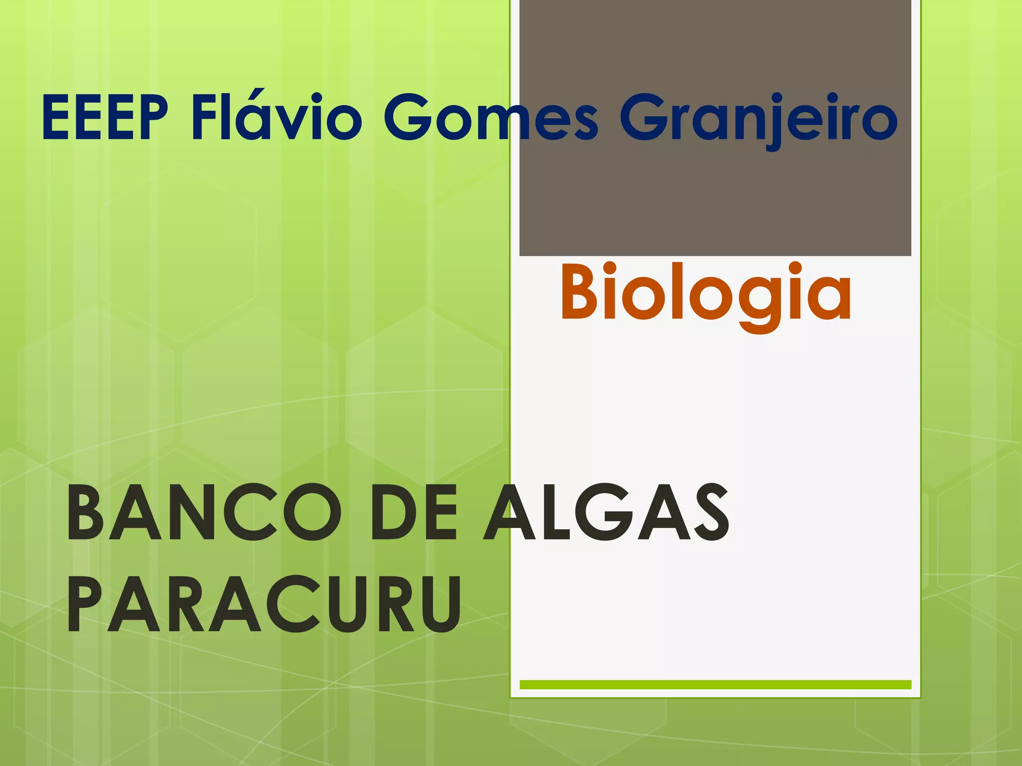 O documento trata de um projeto de pesquisa sobre biologia de algas no município de Paracuru, no Ceará, conduzido pelo pesquisador Flávio Gomes Granjeiro.