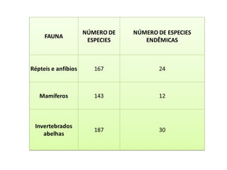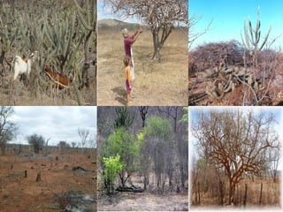 O bioma caatinga, com uma área de 844.453 km², abrange principalmente o nordeste do Brasil, destacando sua biodiversidade, incluindo 932 espécies de plantas e uma variedade de fauna, embora a exploração dos recursos naturais esteja causando desmatamento e ameaças às espécies. A região é essencial para atividades econômicas como pecuária, agricultura e extrativismo vegetal, além de ter sido reconhecida pela UNESCO como reserva da biosfera em 2001, enfocando a conservação da biodiversidade e a sustentabilidade. As plantações medicinais e madeireiras, além da fauna endêmica, são importantes, mas enfrentam altos riscos de extinção devido à exploração humana e à degradação do habitat.