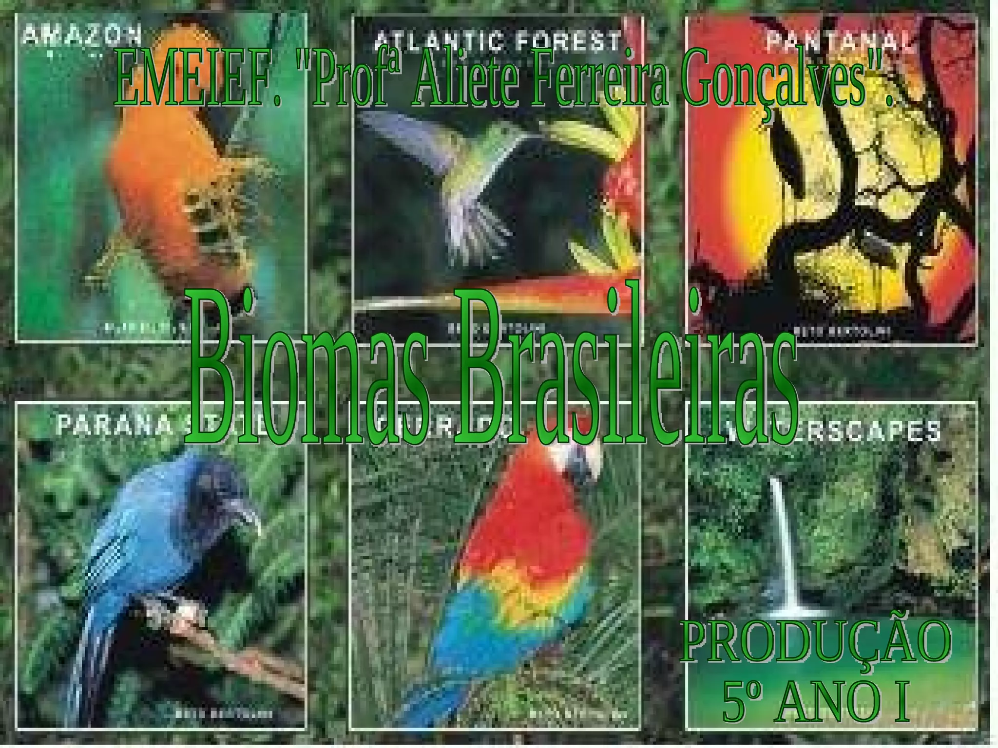 O documento apresenta resumos sobre os principais biomas brasileiros: Pantanal, Mata Atlântica, Amazônia, Caatinga, Cerrado, Pampa e Mata Atlântica. Cada bioma é descrito em 1 ou 2 frases, destacando sua localização geográfica, características da vegetação e impactos causados pela ação humana.