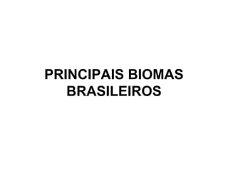 Os principais biomas brasileiros incluem a Floresta Amazônica, o Cerrado, a Caatinga, as Florestas de Cocais, o Pantanal Mato-Grossense e a Mata Atlântica. Cada bioma possui características únicas de vegetação, clima e adaptações à sua região.