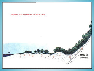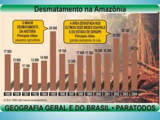 O documento descreve os principais biomas brasileiros, incluindo suas características, localizações e tipos de vegetação. São descritos seis biomas principais: Cerrado, Caatinga, Floresta Amazônica, Mata Atlântica, Mata de Araucárias e Pantanal. Além disso, são mencionados outros tipos de vegetação como a Mata dos Cocais e a vegetação litorânea.