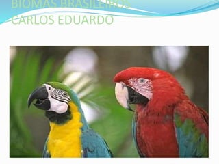 O documento descreve os principais biomas brasileiros, incluindo a Mata Atlântica, o Cerrado, a Caatinga, o Pantanal, os Pampas e Campos Sulinos, os ecossistemas costeiros e a Amazônia. Fornece detalhes sobre a localização, características e tamanho original de cada bioma.