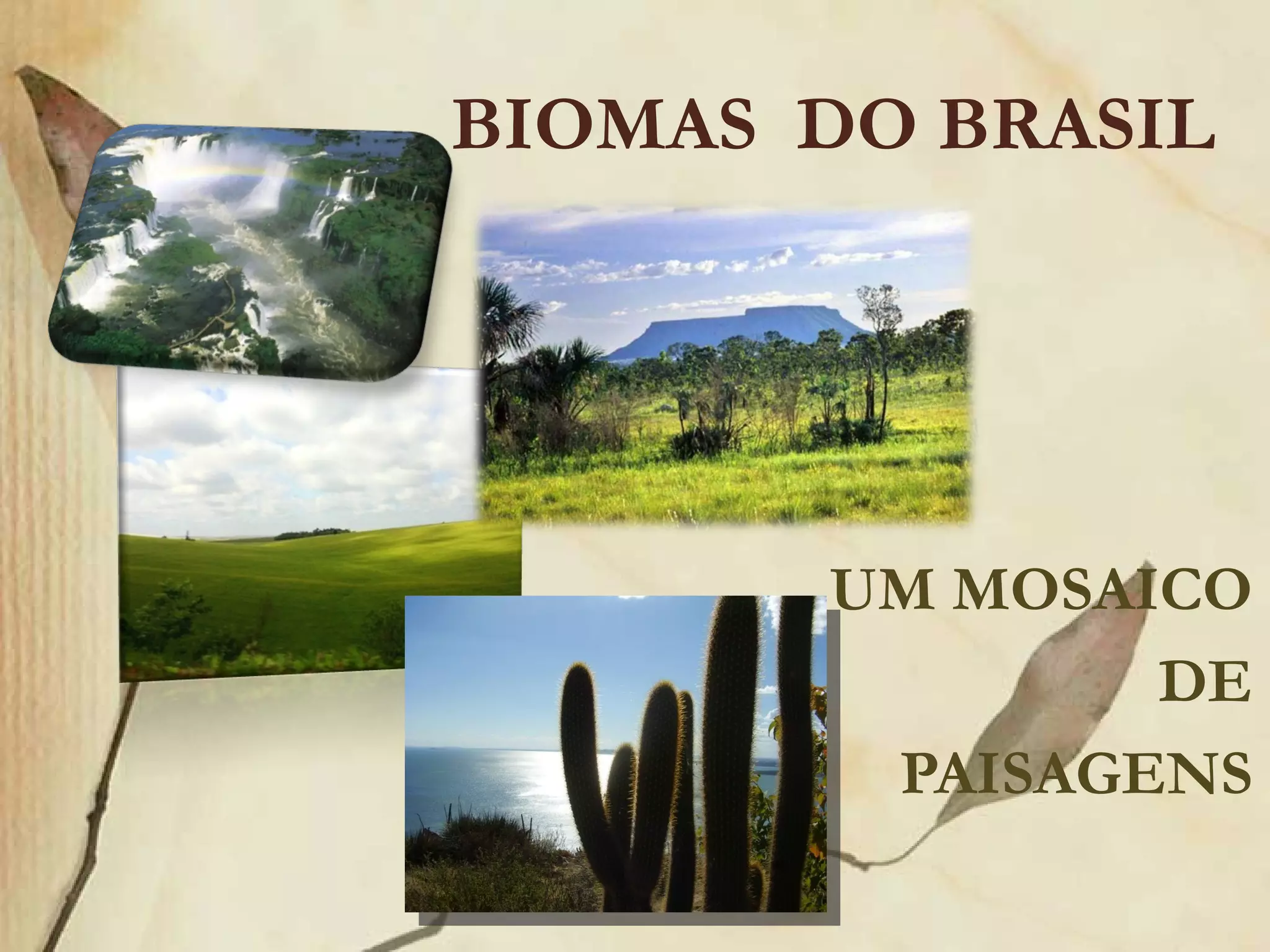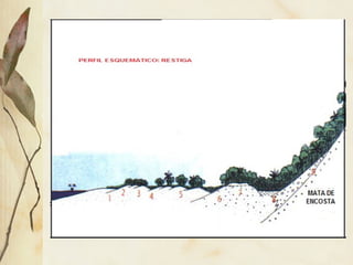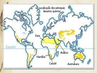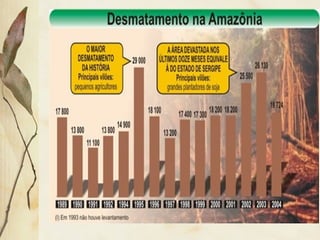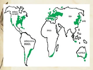 O documento descreve os principais biomas do Brasil, classificando-os de acordo com fatores como grau de umidade, forma das folhas, porte das plantas e diversidade de espécies. Os biomas incluem a tundra, florestas temperadas, desertos, taiga, cerrado, caatinga, Amazônia, Mata Atlântica, campos, Pantanal e vegetação litorânea. Cada bioma possui características únicas de clima, solo, relevo e tipos de vegetação que lhes permitem se adaptar à sua
