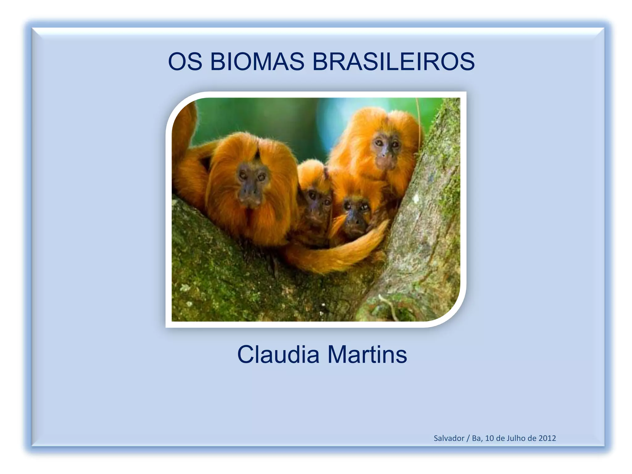 O documento descreve os seis principais biomas brasileiros, incluindo suas características, localizações e importância. São eles: a Caatinga, o Cerrado, a Mata Atlântica, o Pampa, o Pantanal e a Amazônia. Cada bioma possui vegetação, animais e ecossistemas únicos que compõem a grande biodiversidade do Brasil.