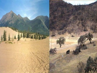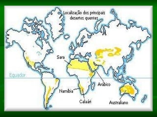 1) O documento descreve os principais biomas do mundo e do Brasil, classificando-os de acordo com fatores como clima, vegetação e localização geográfica.