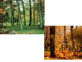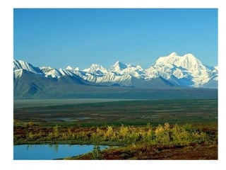 O documento descreve os principais biomas terrestres, incluindo tundra, taiga, floresta tropical, floresta decídua temperada, campos e deserto. Cada bioma é caracterizado pela vegetação, animais e condições ambientais como clima e solo.