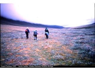 1) O documento descreve um estudo que mostra que o aquecimento global pode fazer com que a tundra libere carbono armazenado no solo para a atmosfera, agravando o efeito estufa.