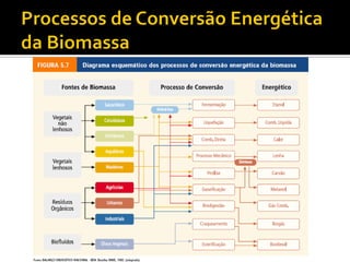 O documento discute a produção de energia elétrica através da biomassa no Brasil, incluindo os principais processos de conversão energética da biomassa, as fontes disponíveis no país e as usinas termoelétricas movidas a biomassa. Também aborda aspectos socioambientais e sistemas de cogeração de biomassa.