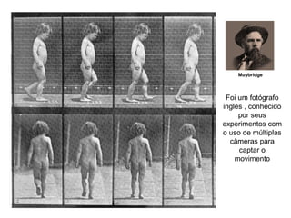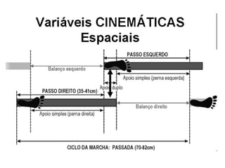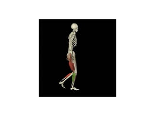 O documento discute a locomoção humana (marcha) e aborda: 1) Experimentos de Muybridge sobre a captura do movimento; 2) Abordagens qualitativas versus quantitativas para estudar a marcha; 3) Ciclo da marcha e músculos envolvidos, como glúteos e quadríceps.