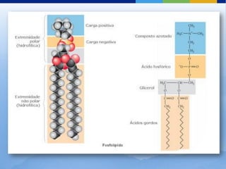 Este documento descreve os constituintes básicos dos seres vivos. Afirma que apesar da diversidade de espécies, todas as formas de vida são constituídas pela mesma unidade estrutural e funcional - a célula. Explora a composição química das células, identificando que os seres vivos são constituídos principalmente por água, carbono, proteínas, lipídios, ácidos nucleicos e sais minerais. Além disso, discute a estrutura e função destas moléculas complexas que formam a base da