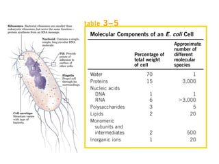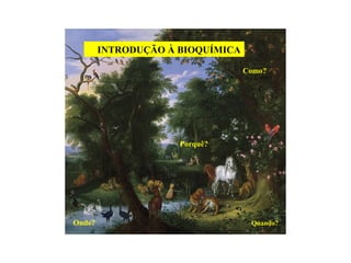 O documento discute biomoléculas, cobrindo os seguintes tópicos: elementos químicos encontrados em células, tipos de moléculas presentes em seres vivos, reações químicas que ocorrem nas células, e a evolução pré-biótica. Ele fornece detalhes sobre características do carbono, representações estruturais de biomoléculas, e as principais classes de reações celulares.