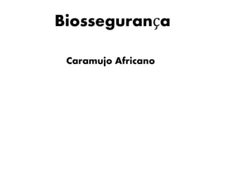 O documento discute o caramujo africano (Achatina fulica), um molusco invasor no Brasil que transmite doenças graves. Ele descreve as características do caramujo, os riscos à saúde que ele representa e as melhores práticas para sua coleta e eliminação de forma segura, como usar luvas e queimá-lo completamente. O controle manual é apontado como o método mais eficaz para seu manejo e erradicação.