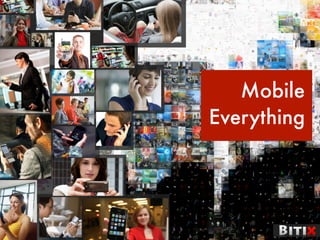O documento discute o conceito de mobile e computação móvel, definindo-o como computação conectada ou não à internet que permite o consumo e criação de conteúdo em qualquer lugar e a qualquer hora, apesar da usabilidade limitada. Também aborda os conceitos de pós-PC e números relacionados ao mercado mobile no Brasil e no mundo.