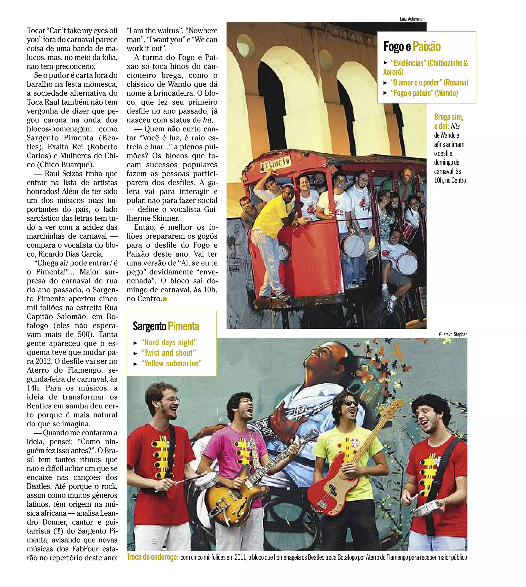 2) O Sargento Pimenta, que homenageia os Beatles, teve grande sucesso em seu primeiro ano e mudará seu desfile para o Aterro do Flamengo em 2012 para receber maior público