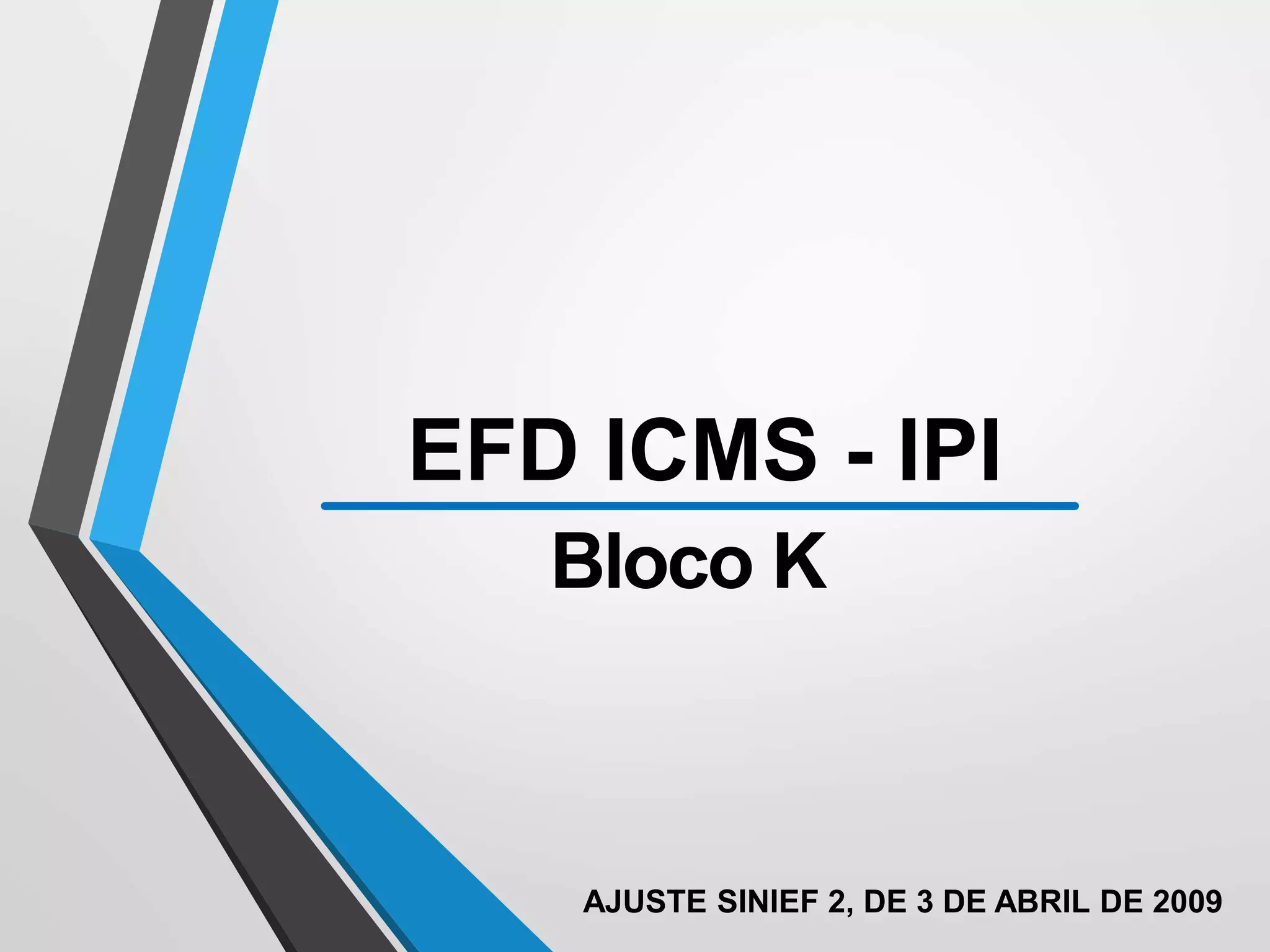O documento descreve as novas regras para o preenchimento do Bloco K da EFD ICMS/IPI, que passa a exigir o controle da produção e estoque de empresas. A partir de 2017, empresas com faturamento anual acima de R$300 milhões deverão fornecer detalhes sobre estoques, produção, insumos e processos industriais. O objetivo é dar mais transparência às operações e facilitar a fiscalização sobre créditos tributários.