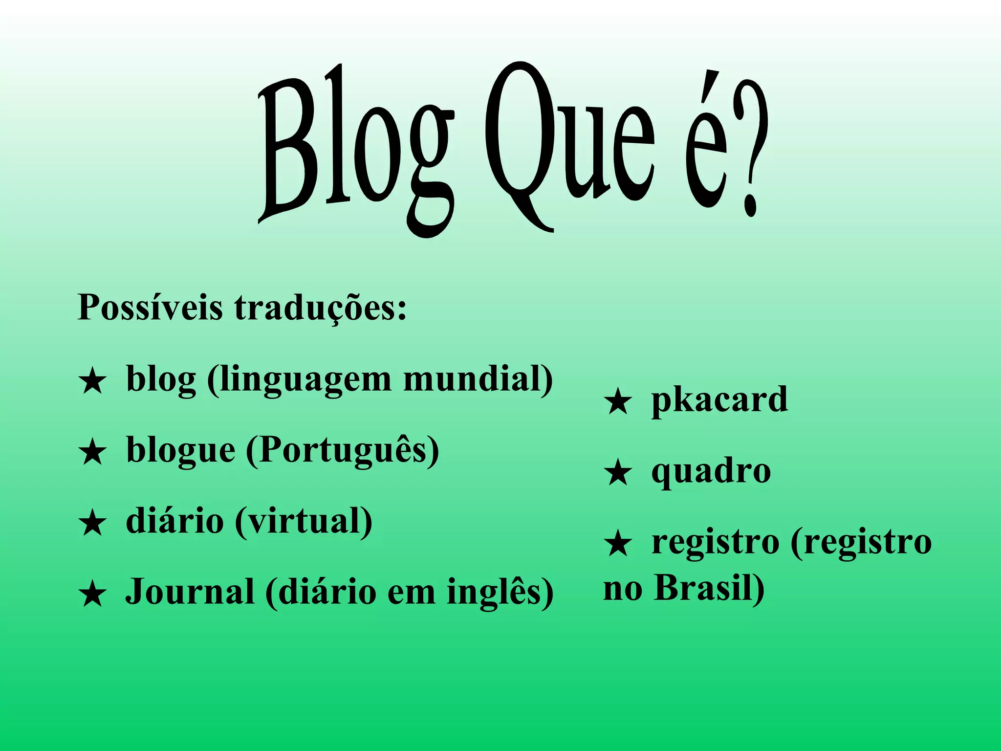 Um blog é uma página na internet atualizada frequentemente com conteúdo como opiniões, fatos e imagens de um ou mais autores. Blogs podem ajudar a construir redes sociais e divulgar ideias, e blogs educativos são uma ferramenta útil para professores e alunos registarem e partilharem ideias. Blogs permitem a comunicação entre famílias, amigos e empresas de uma forma mais simples do que e-mail.
