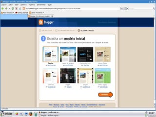 O documento discute o uso de blogs educativos no processo de ensino-aprendizagem. Um blog permite a comunicação entre a escola e o mundo externo e facilita o ensino contextualizando a aprendizagem por meio da interação. Blogs podem ser pessoais, coletivos ou educativos e oferecem atividades que estimulam a aprendizagem fora da sala de aula.
