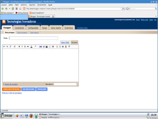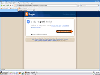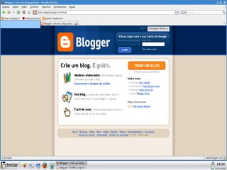 O documento discute o uso de blogs educativos no processo de ensino-aprendizagem. Ele define o que é um blog, seus tipos, e como os blogs podem ser usados como ferramentas pedagógicas para promover a interação, colaboração e aprendizagem significativa entre professores e alunos.
