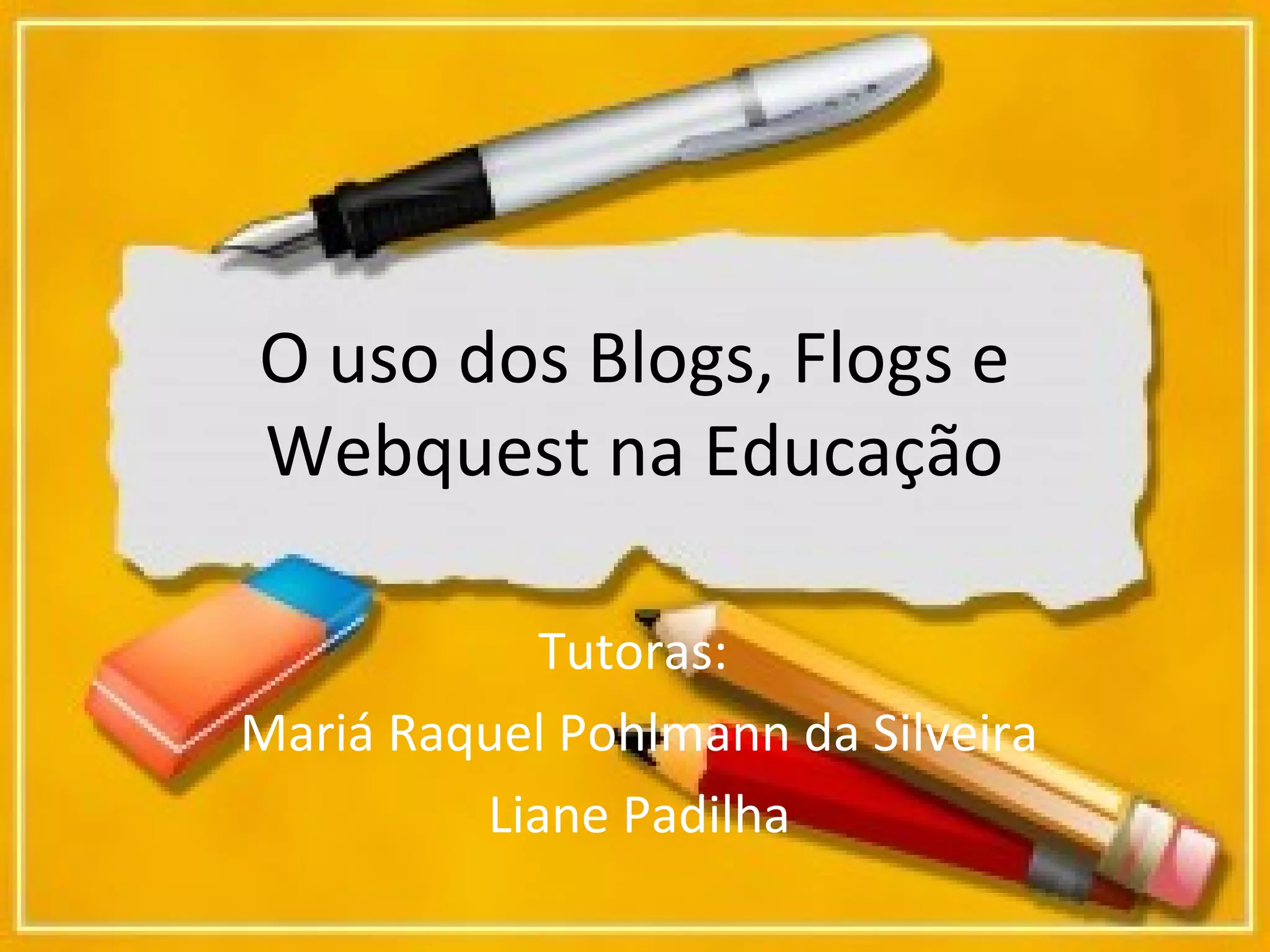 O documento discute o uso de blogs, flogs e webquests na educação. Ele explica que blogs permitem publicações interativas de texto, imagens e vídeo e podem ser ferramentas colaborativas. Blogs educativos facilitam a criação e atualização de conteúdo e incentivam a leitura, escrita e reflexão dos alunos. Flogs são blogs focados em fotos.
