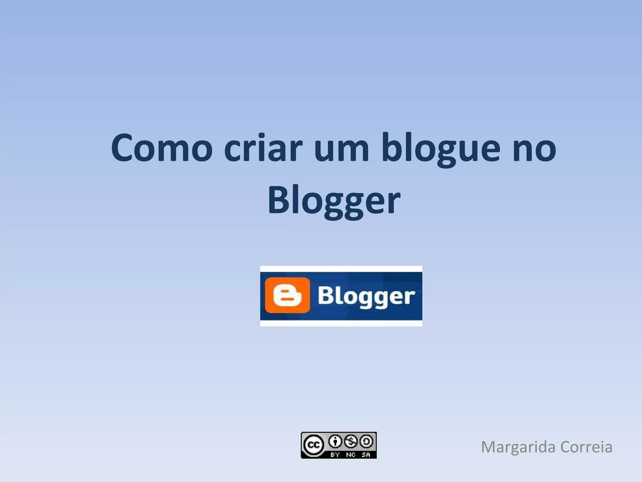 Este documento fornece instruções sobre como criar uma conta no Blogger e começar um blog. Explica como preencher os campos necessários para criar uma conta, atribuir um nome e endereço ao blog, escolher um modelo inicial, começar a publicar artigos, definir configurações como comentários, autores e elementos da página.