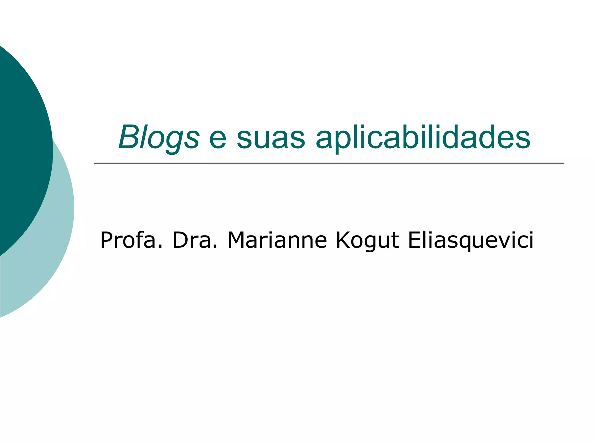 Este documento discute o uso de blogs na educação. Ele explica o que é um blog, como pode ser usado para interação entre professores e alunos, e fornece exemplos de blogs educacionais. Também fornece instruções sobre como criar um blog no Blogger e inserir vídeos do YouTube.