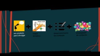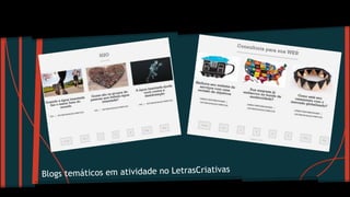 O documento discute como um blog temático pode promover uma marca, produto ou serviço através de conteúdo relevante e otimizado para redes sociais, filtrando visitantes para funis de vendas e fidelizando clientes de maneira barata.