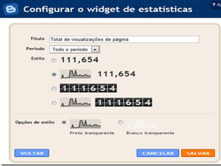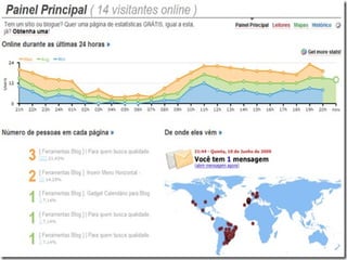 Métricas Google Analytics:Não é um contador de visitas , mas oferece todos os dados referentes às visitas do seu blog. Super fácil de usar Será um banco de informações bem completo e seguro
