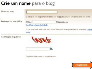 Blogspot Ferramentas doBlogspot Novo! Personalize o seu design Publicar a sua voz é fácil e grátis Interface simples Seu site gratuito Adicionar fotos e vídeos à sua postagem