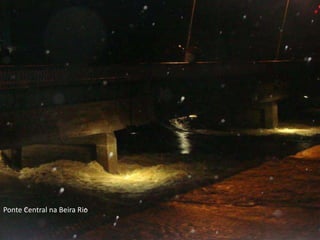 O documento lista locais em Blumenau, SC que foram afetados por enchentes entre 08 e 09 de setembro de 2011. As áreas listadas incluem o Centro, bairros como Garcia e Itoupava Norte, e locais próximos ao rio como a Beira Rio, a FURB, a Praça em frente ao Hospital SC e a Rua das Palmeiras. Muitos pontos ao longo da Rua XV de Novembro também foram afetados.