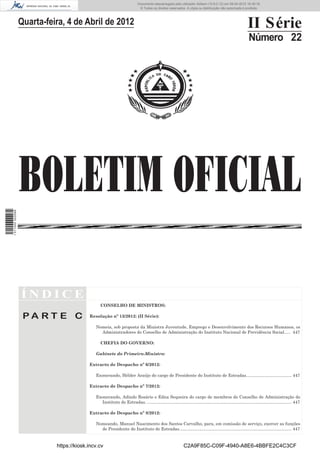 O documento contém vários despachos e resoluções do Conselho de Ministros de Cabo Verde, incluindo: