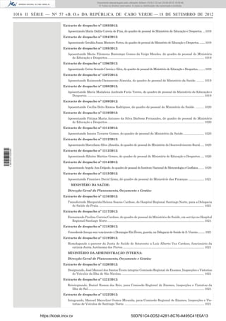 This document summarizes appointments and retirements within the Cabo Verdean government. It announces the appointment of two special advisors to the Prime Minister and delegates authority to the Secretary of State for Public Administration. It also lists several retirements from the ministries of education, health, rural development, and finances.