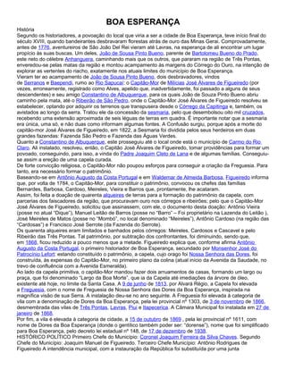 1) No final do século XVIII, bandeirantes fundaram o povoado de Boa Esperança à procura de ouro.