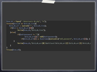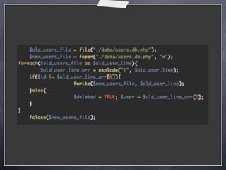 O documento discute boas práticas de programação PHP, enfatizando a importância de código limpo, organizado e fácil de manter através de técnicas como encapsulamento, padronização e refatoração.