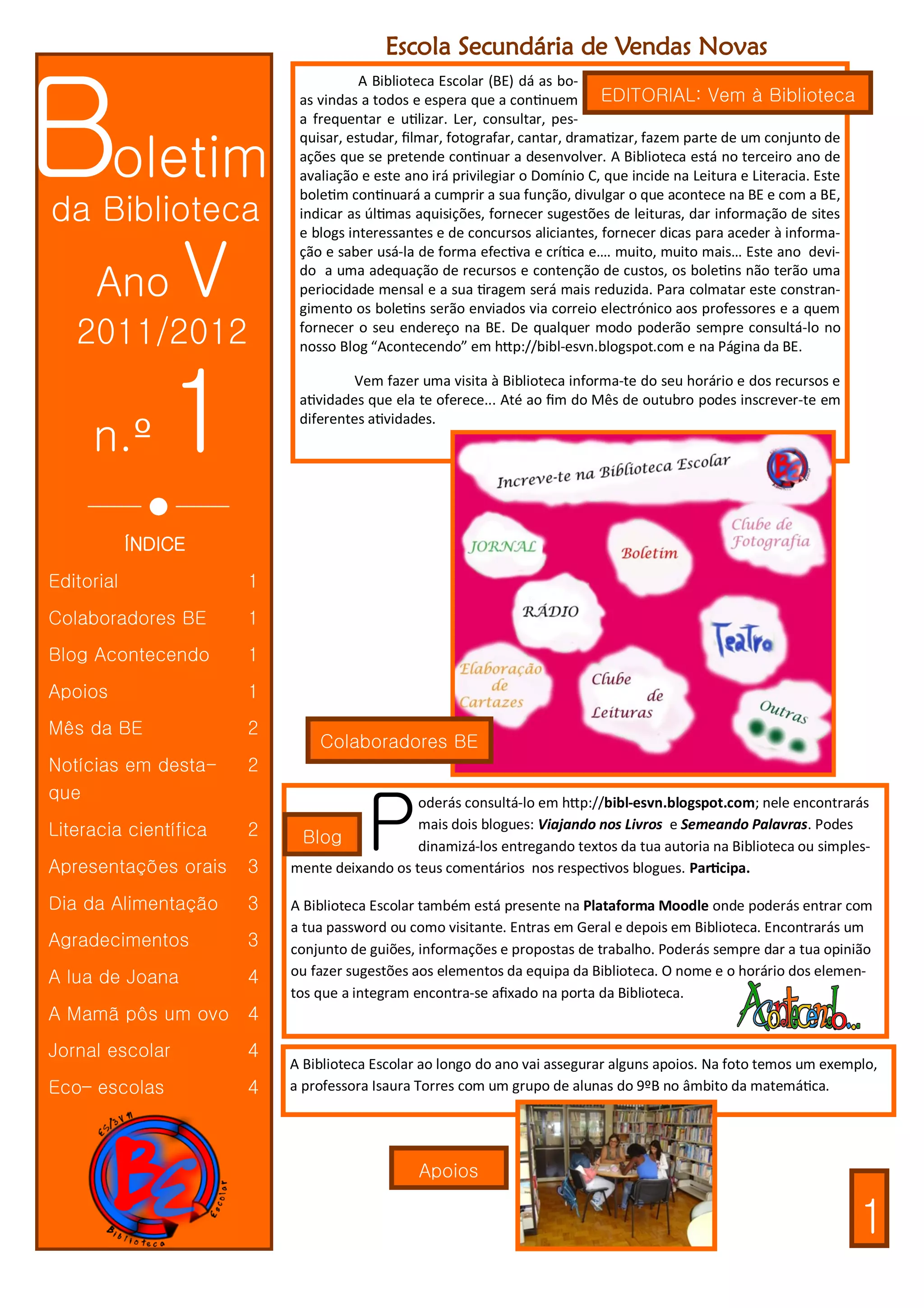 Este boletim da Biblioteca Escolar apresenta: