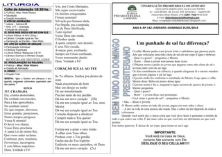 Este boletim da Congregação Presbiteriana do Jenipapo contém: