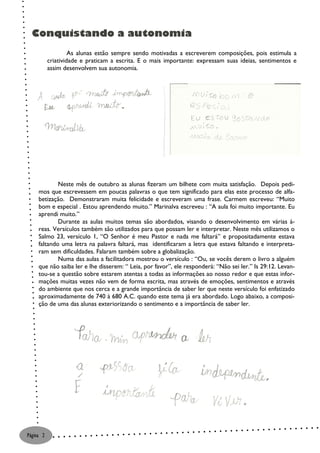 Este documento relata as atividades do projeto "Geração Mulher" que oferece alfabetização, cidadania e oportunidades de geração de renda para ex-moradores de rua. O resumo é: As alunas estão progredindo bem no aprendizado e desenvolvendo autonomia. O projeto precisa de doações e voluntários para continuar oferecendo este apoio importante.