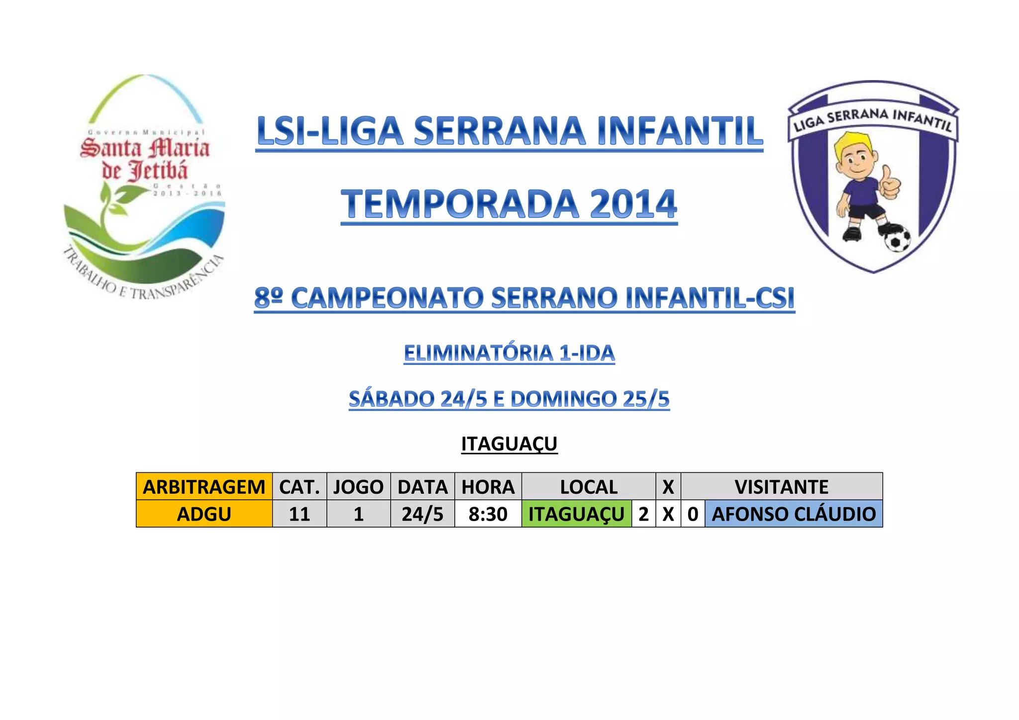 ITARANA 13 3 1/6 8:30 ITAGUAÇU X SANTA TERESA