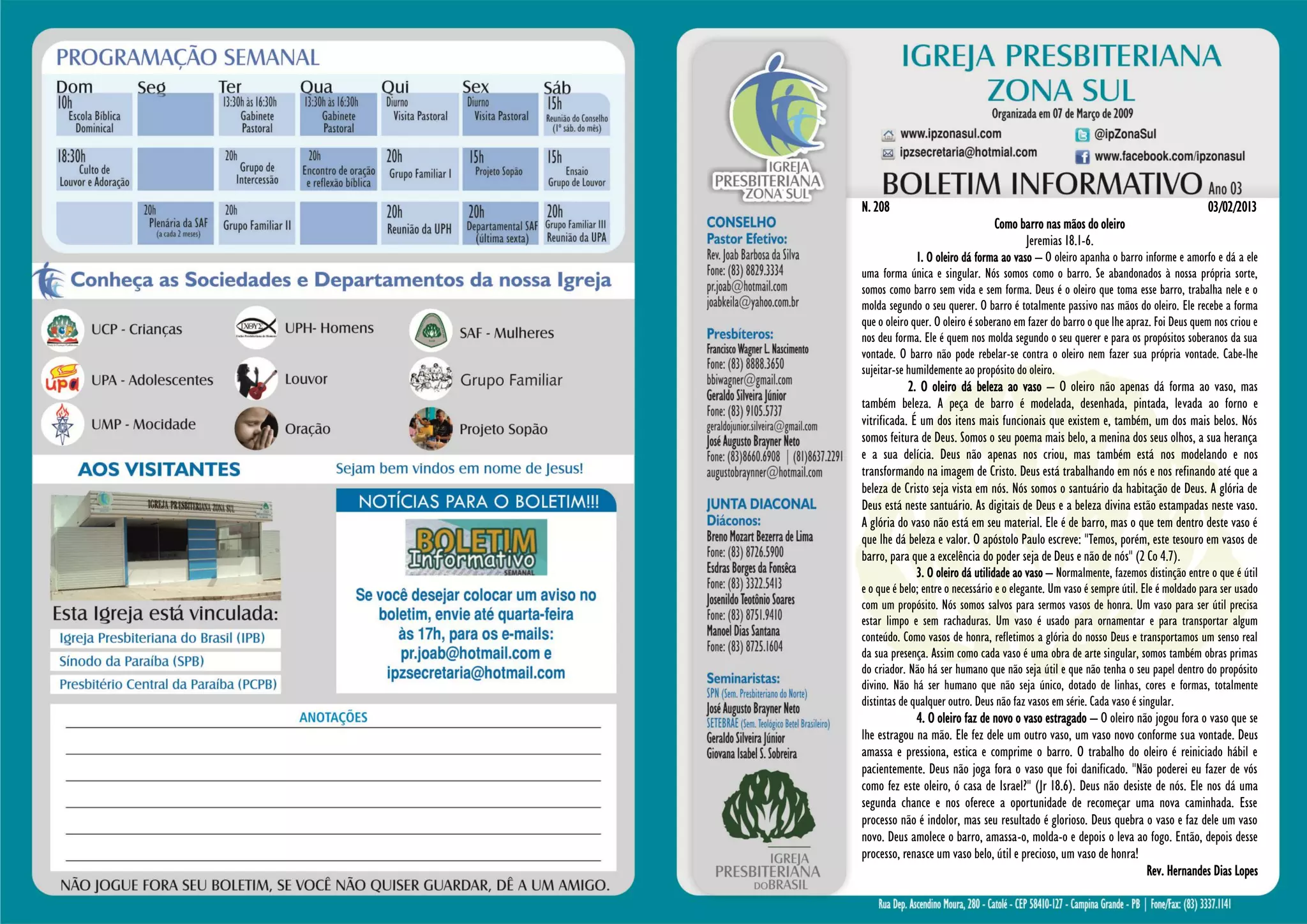 IGREJA- Ele estava no princípio com Deus. A IP ZONA SUL AGRADECE - Foi PARAR E REFLETIR - “Muita palavra não sacia a alma, é a vida