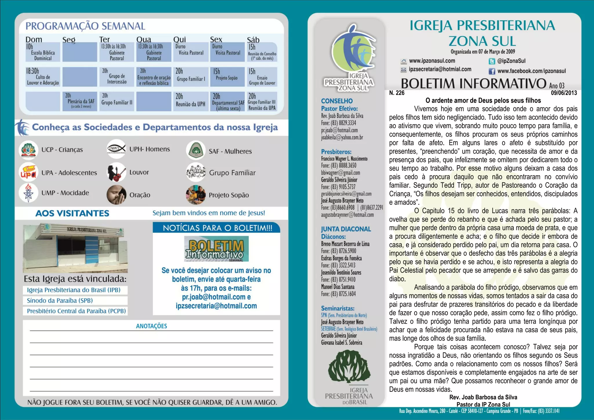 próximo sábado (15/06) às 14:30h aqui na IPZS.