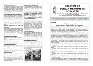 2) Serão realizadas aulas de preparação para batismo e profissão de fé aos domingos às 9h.